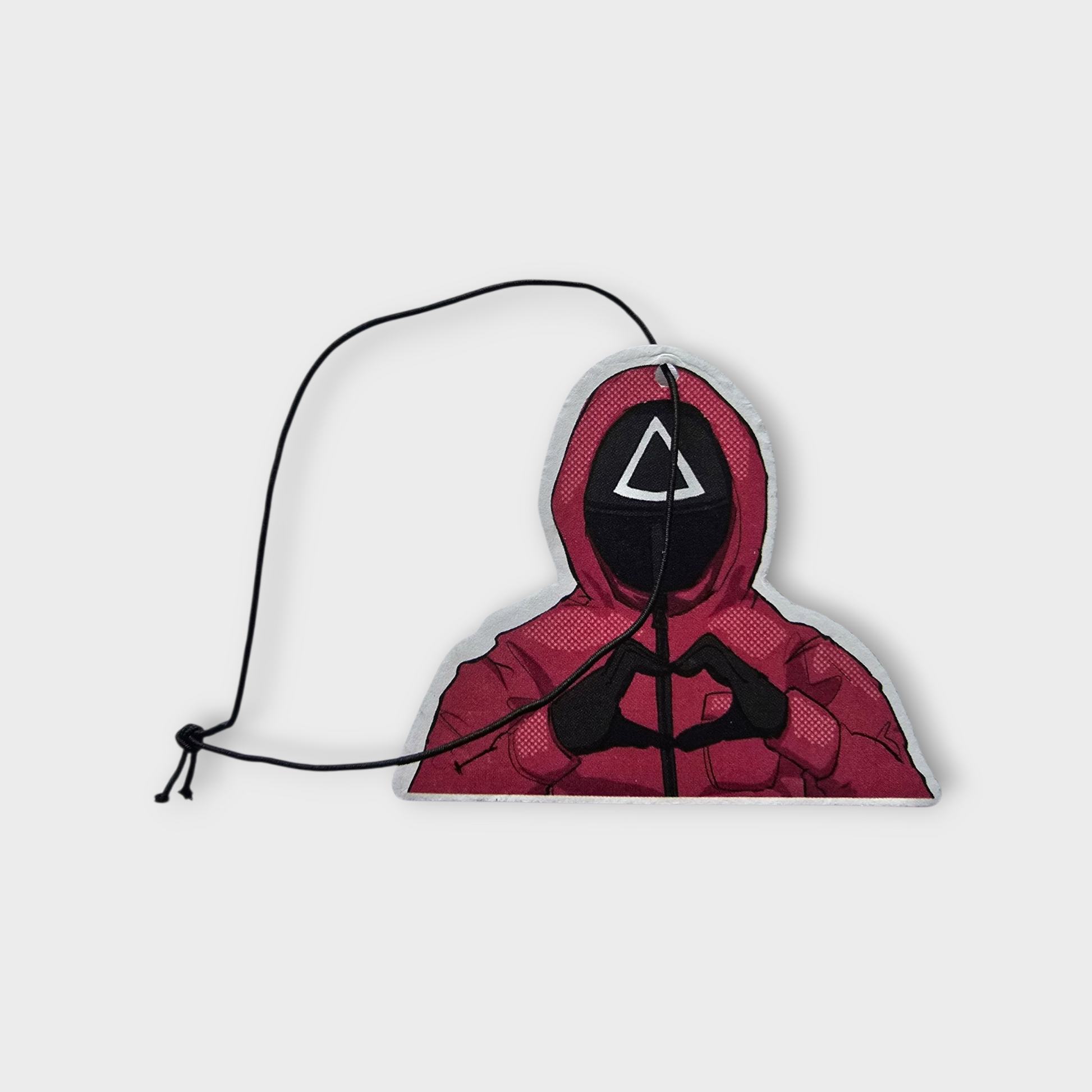 Experience the thrill of the game with our unique Car Air Freshener featuring a iconic Squid Game red-suited man. Designed to add a bold touch to your vehicle, this freshener combines captivating imagery with a refreshing scent, making every drive memorable. Perfect for fans of the hit series and those who love standout accessories—bring a splash of intrigue and freshness to your car today!